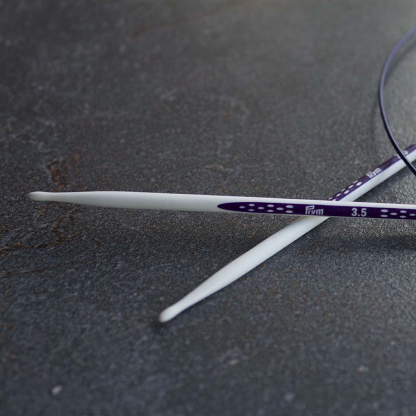High quality ergonomic circular needles from Prym. These are ideal if you suffer from wrist ache or arthritis. The needles are triangular for an easier grip and the tip has a 'bulb' shape to help with gripping the stitches.