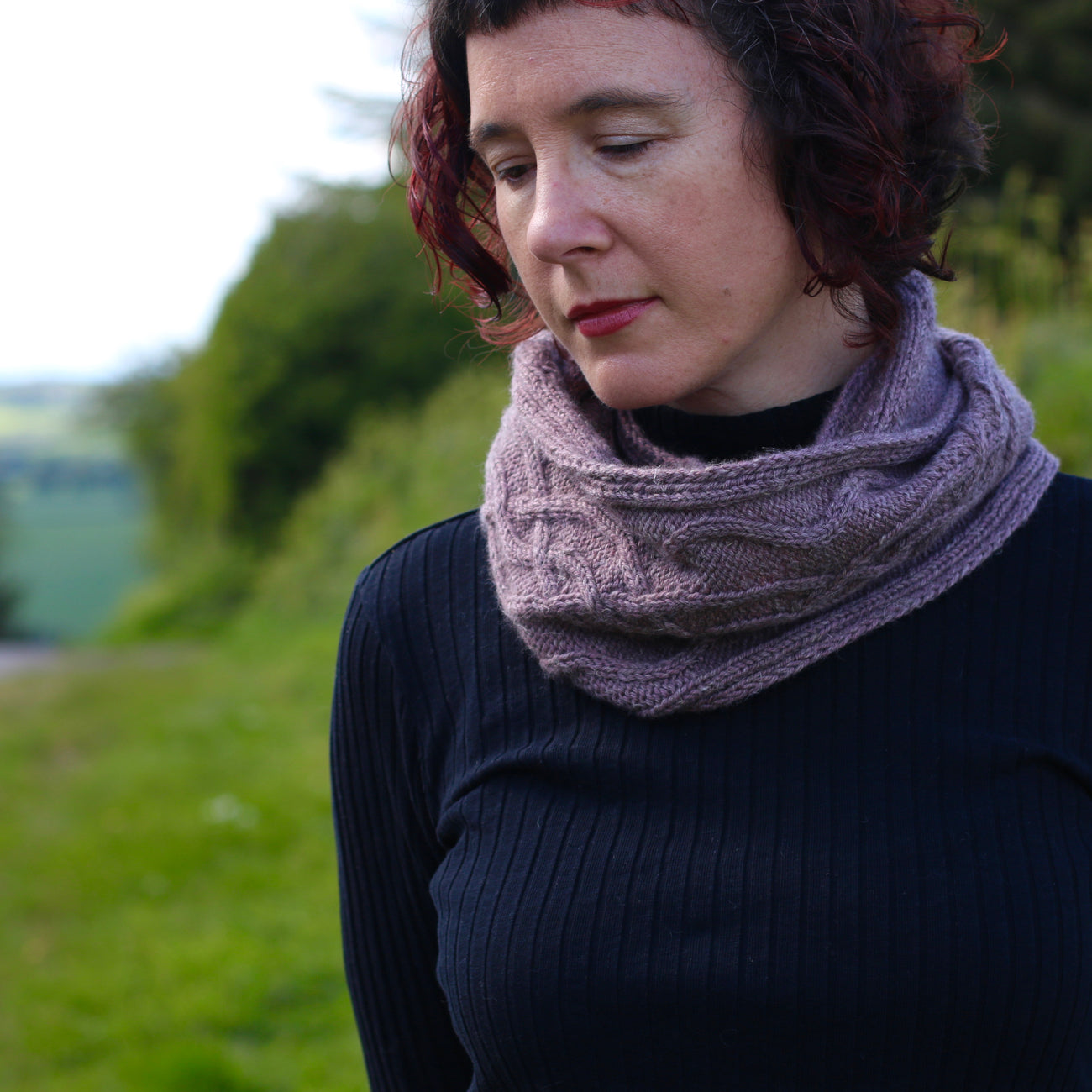 The gently undulating wave of this cable works so nicely when worked for the side-to-side to create a warm, elegant cowl.