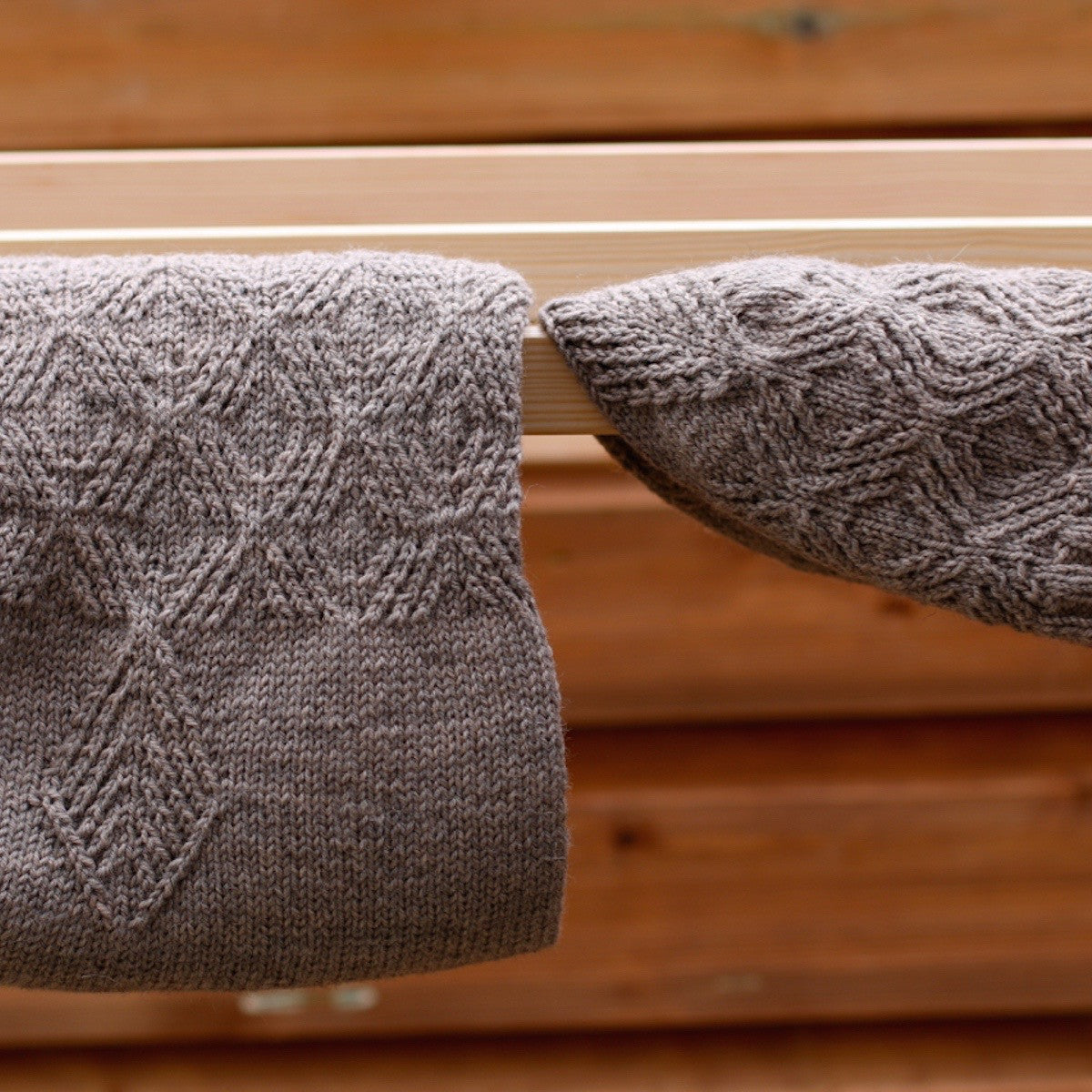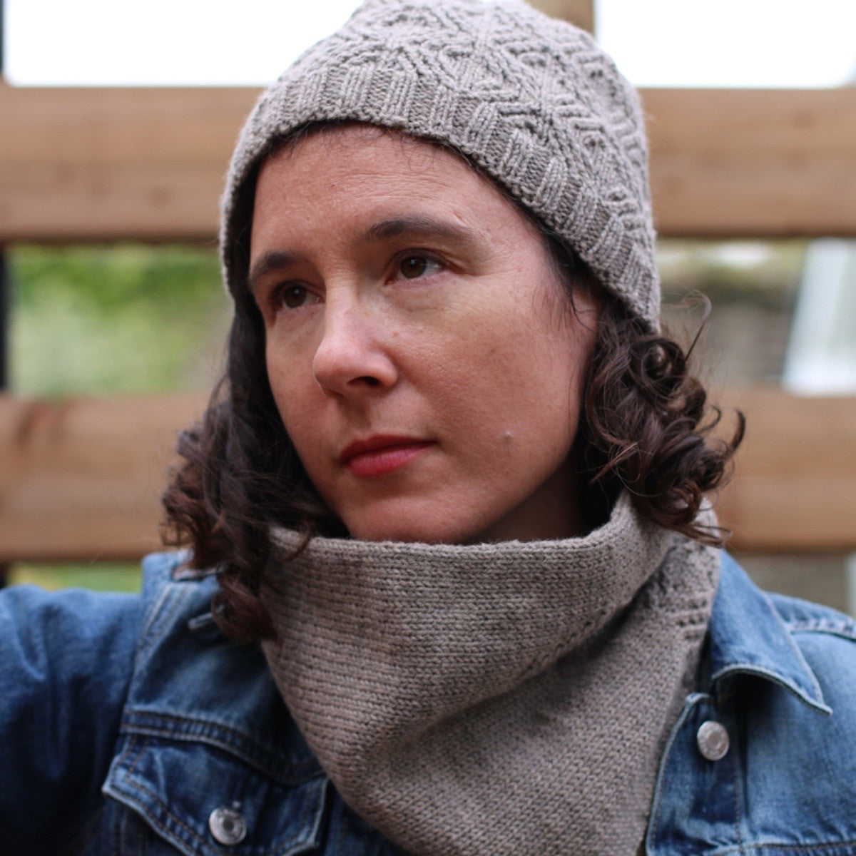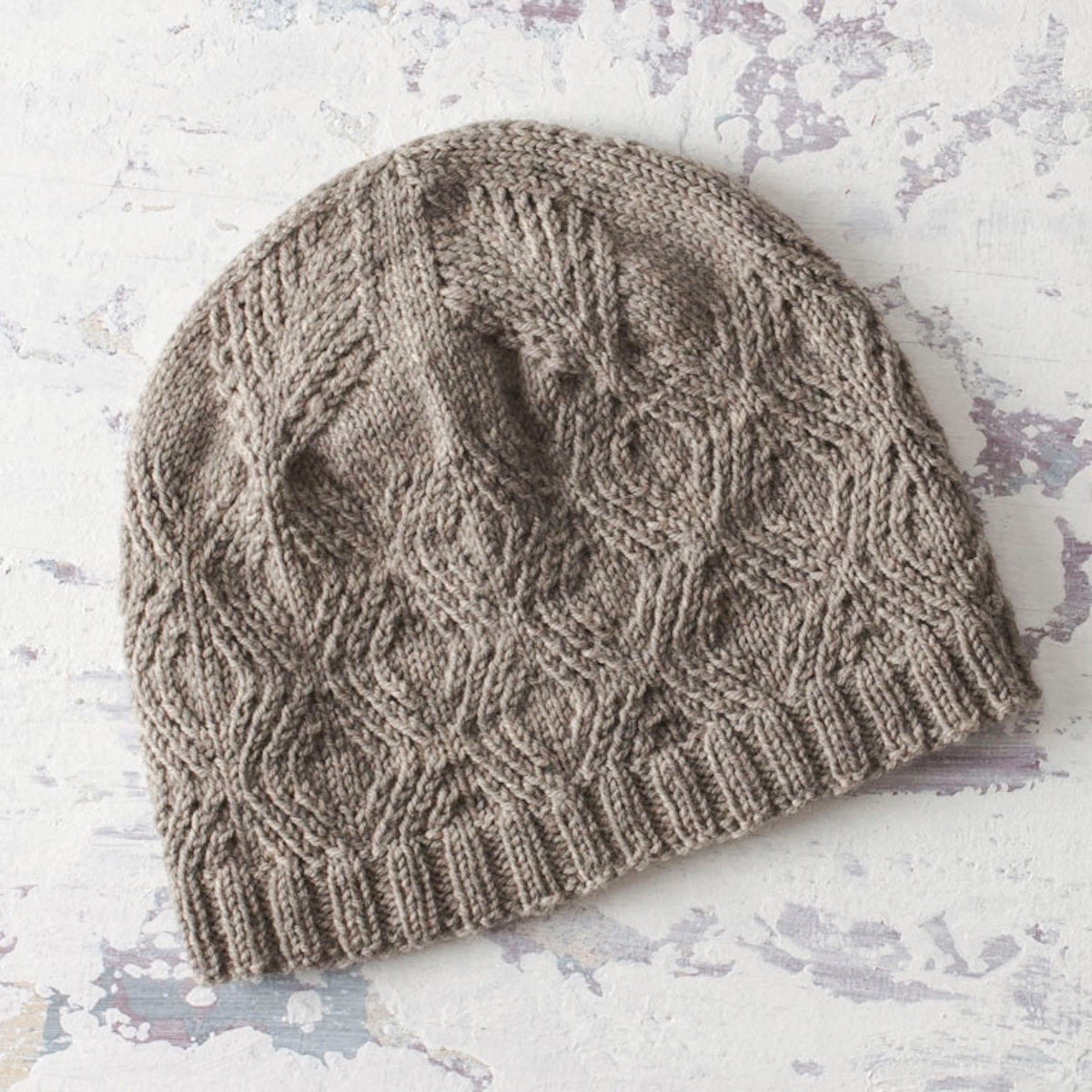 Small lattice cables create a beautiful texture in this warm cowl and hat set.