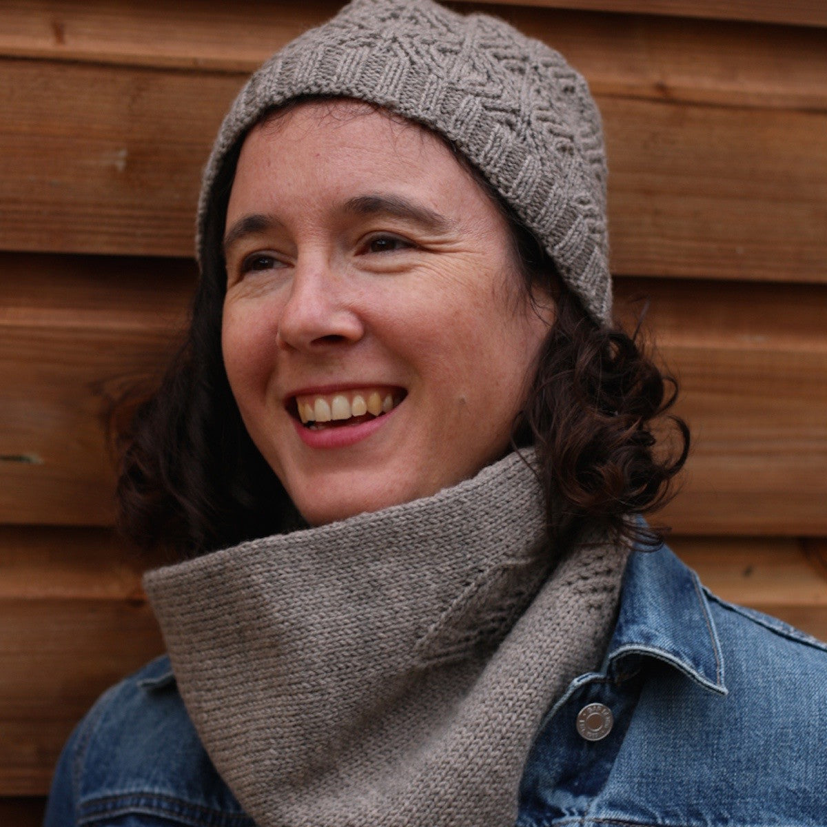 This matching hat and cowl set use a delicate cable stitch to create a subtle textured fabric. Knit either the fitted or slouchy style to create your perfect hat. The cowl is worked in double thickness so it stands well around the neck to keep you warm.