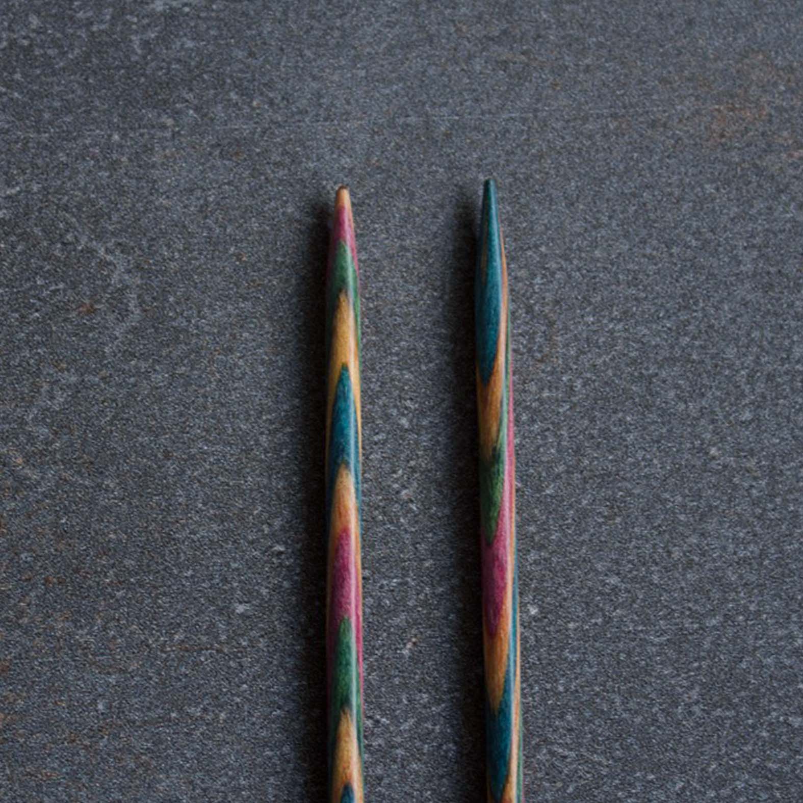 Made from a colourful wood composite these needles are very comfortable to work with.