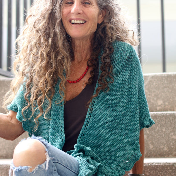 Wide garter wings with an expanding lace central panel create a shawl that sits beautifully on your shoulders. Knit from the top down, the central lace panels expand in steps, which creates a focal point for the shawl. The gentle edge ruffle is the perfect end flourish!