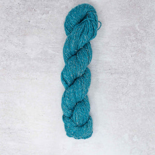 Stolen Stitches ‘Nua Sport’ (60% Merino, 20% Yak, 20% Linen, 153 yds / 140 m per 1.8 oz / 50 g); colour: Hatter’s Teal Party (9803), 7 (7, 8, 8, 9, 9, 10, 10, 11, 11) skeins