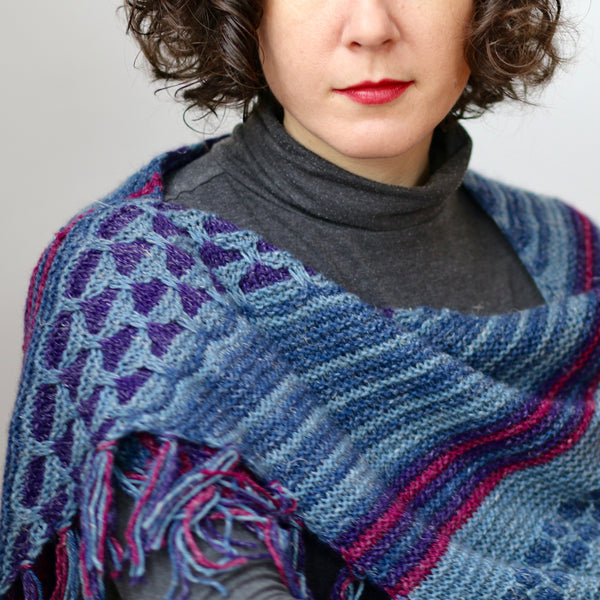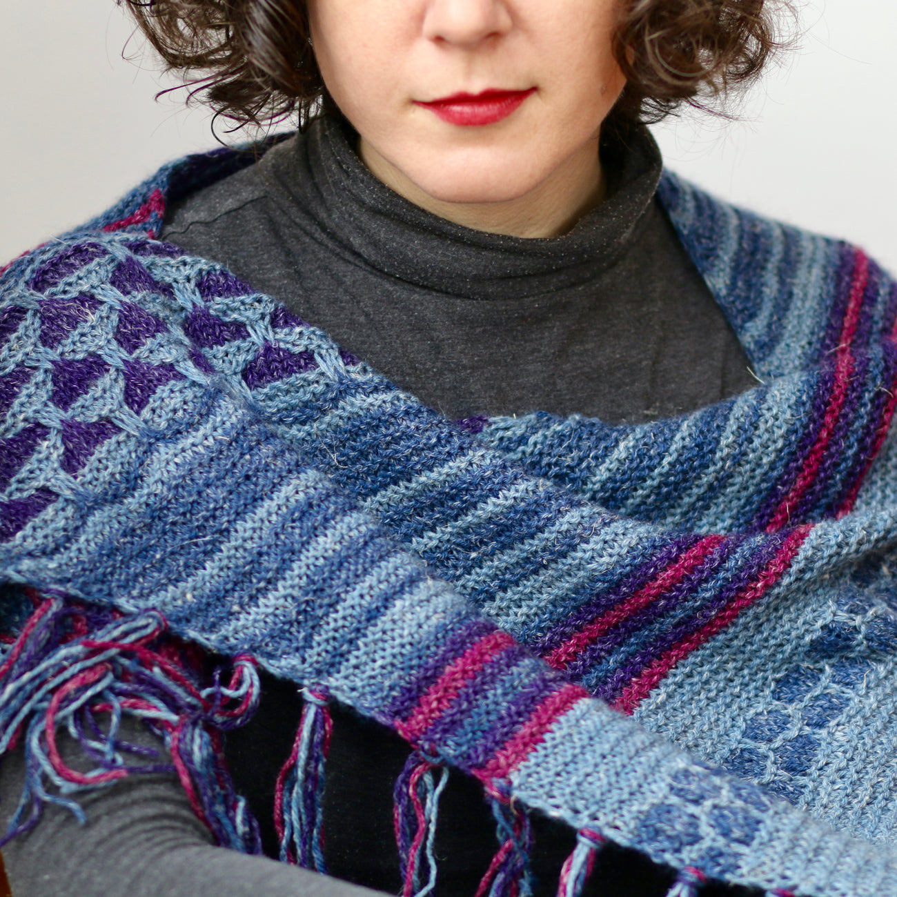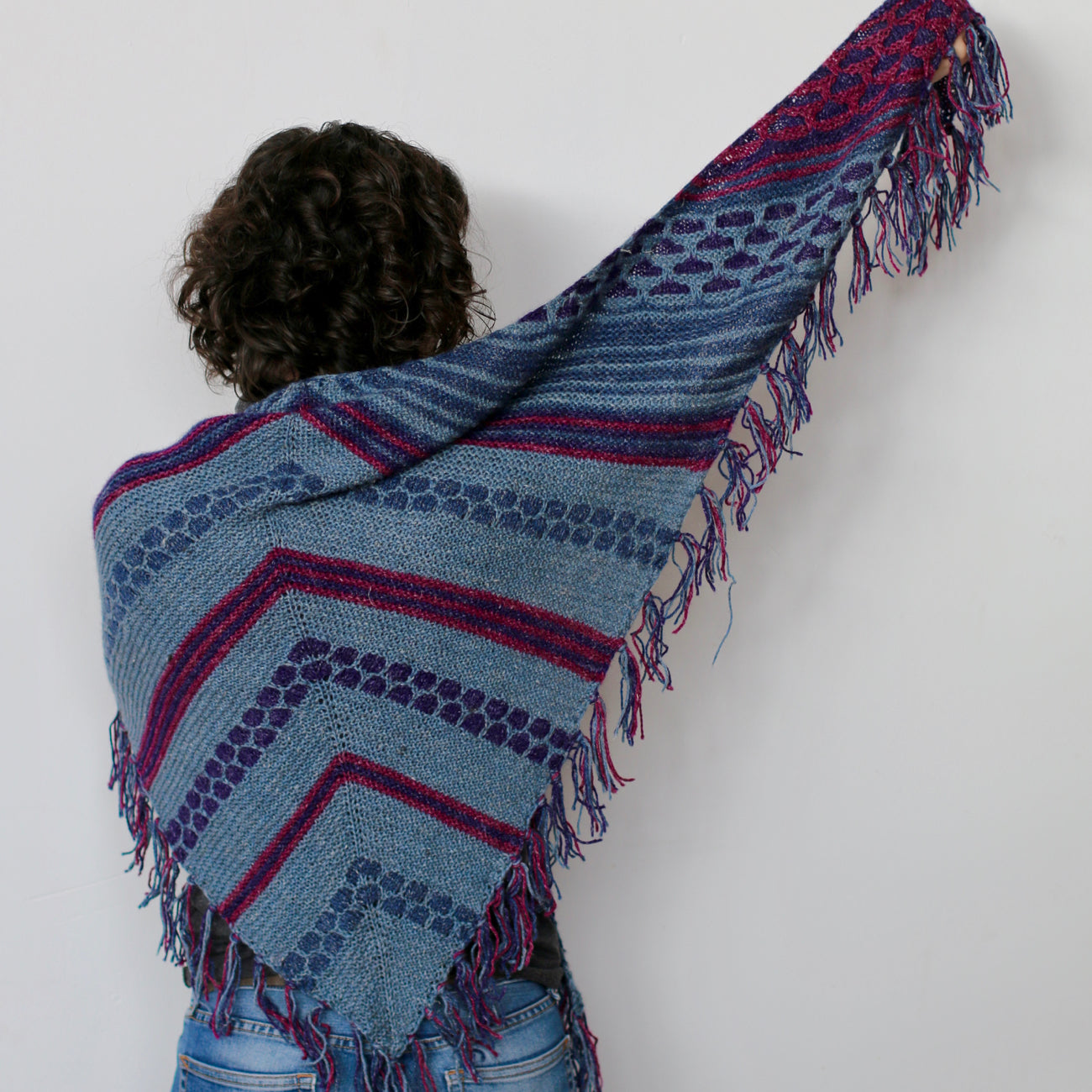Stripes, bubbles and dashes of different colour, you can have fun combining colours in this shawl! Worked from the tip up you'll enjoy working this unusual construction.