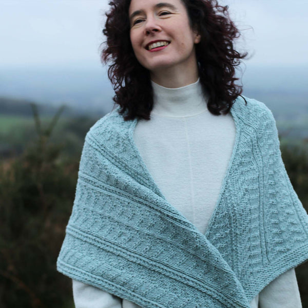 Cosy gansey stitches give you the perfect winter shawl to wrap up with.
