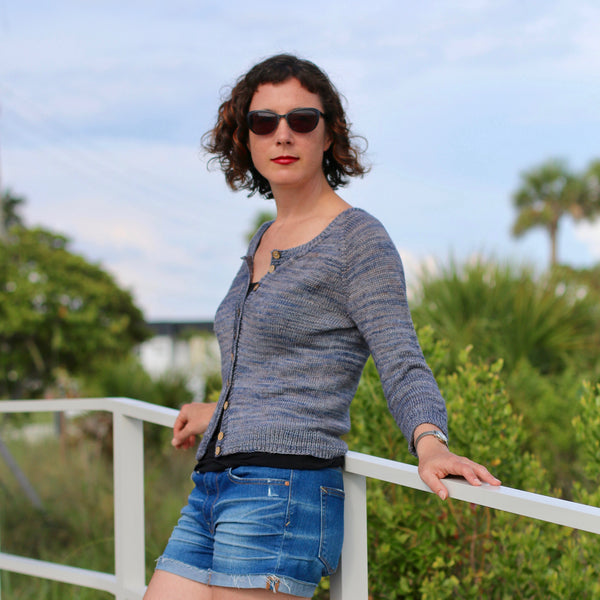 Sometimes you just want a simple, perfect cardigan. One that will go over a summer dress or your favourite pair of jeans. This is the cardigan for you; a basic top-down raglan cardigan with a deep scoop neck and gentle shaping towards the waist. The ¾ length sleeves and lightweight yarn make this the perfect cardigan for every summer and spring outfit.