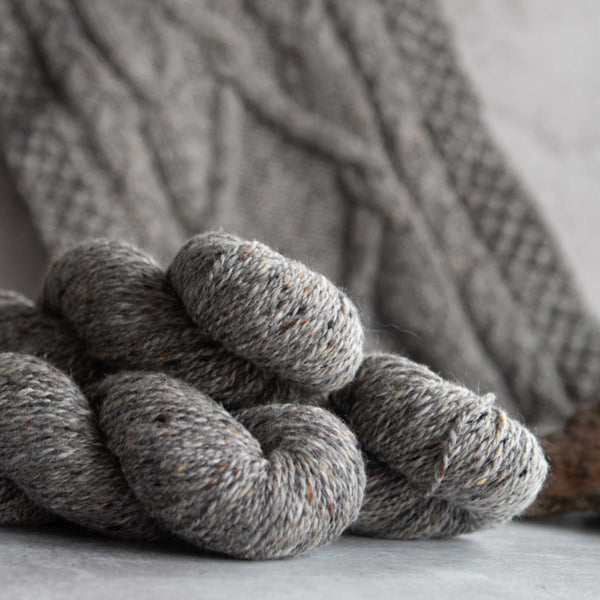 Deas is an earthy aran weight Irish yarn made with 86% Merino Wool, and 14% Mohair woollen spun yarn with a hint of a halo when blocked. The mohair content creates a warm, rich fabric that is deceptively light to wear.