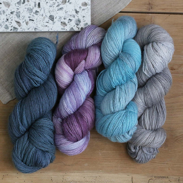 Lustrous, soft merino-silk blend in light fingering weight, perfect for elegant accessories and delicate garments.
