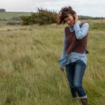 Stolen Stitches ‘Blasta’ (60% Fine Irish Wool, 40% New Zealand Wool; 232 yds / 212 m per 3.6 oz / 100 g); colour: Breac; 4 (4, 4, 4, 5, 5, 5, 5, 6, 6) skeins for sweater, 3 (3, 3, 3, 4, 4, 4, 4, 4, 5) skeins for vest