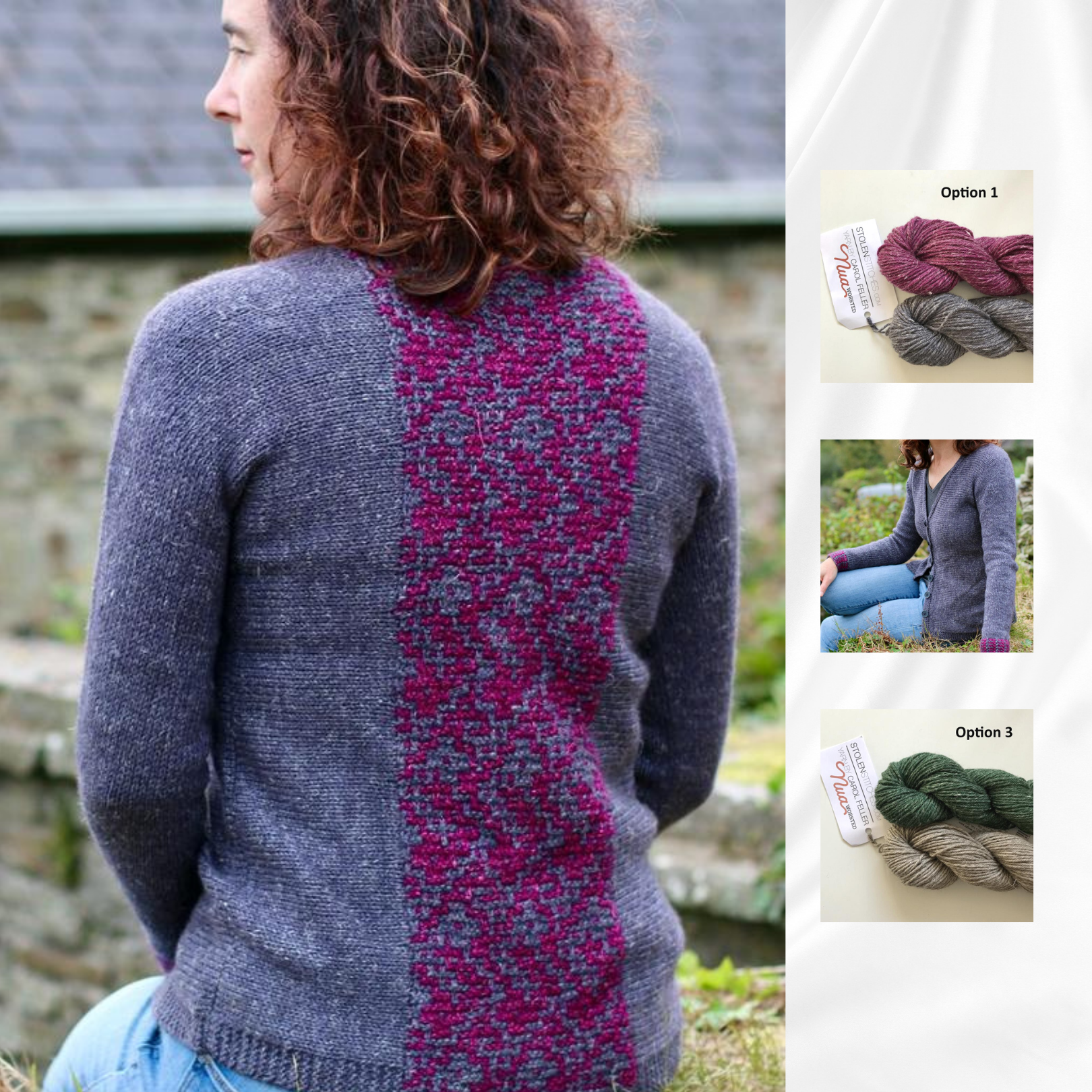 Add a pop of colour with the wonderful mosaic panel on the back of this cardigan. Create either a subtle or dramatic impact with your choice of colours. Easy to knit, you only ever work a single colour at a time!