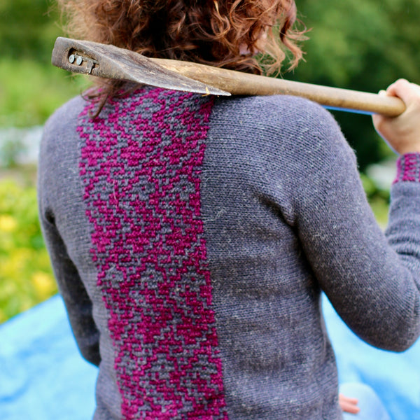 Add a pop of colour with the wonderful mosaic panel on the back of this cardigan. Create either a subtle or dramatic impact with your choice of colours. Easy to knit, you only ever work a single colour at a time!