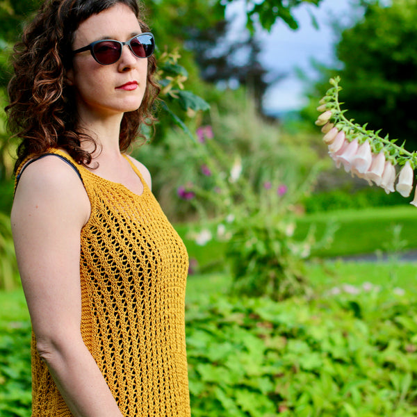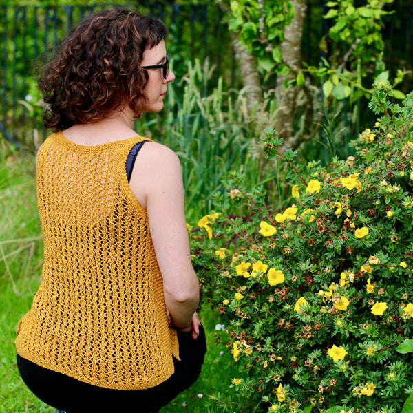 Looking for the perfect summer project? Look no further! Light and lacy, this delicate linen top will take you from beach to a night out with ease. Knit from the bottom up in the round, the simple to memorize lace pattern will fly off your needles. Choose between breezy cotton or organic linen from France!