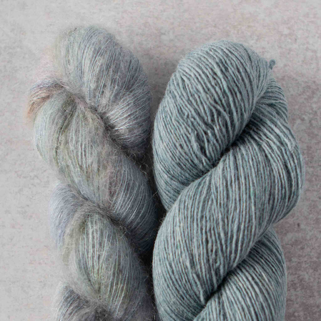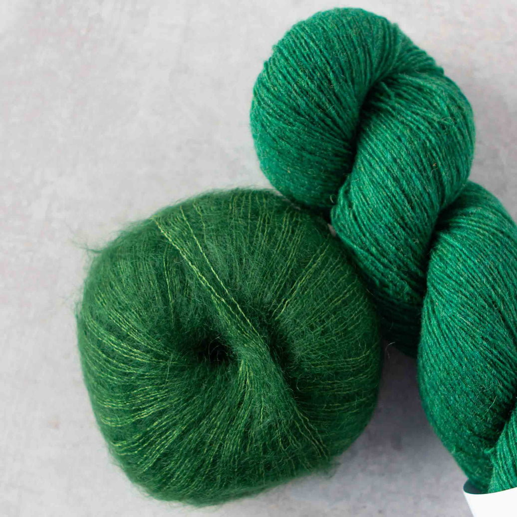 The Iascaire yarn kit contains all of the yarn needed to make Carol Feller's Iascaire brioche sweater. Knitted double-stranded using Blasta Light with Ito Sensai or Manos Del Uruguay Cabrito, this knit is haloed and irresistibly soft.
