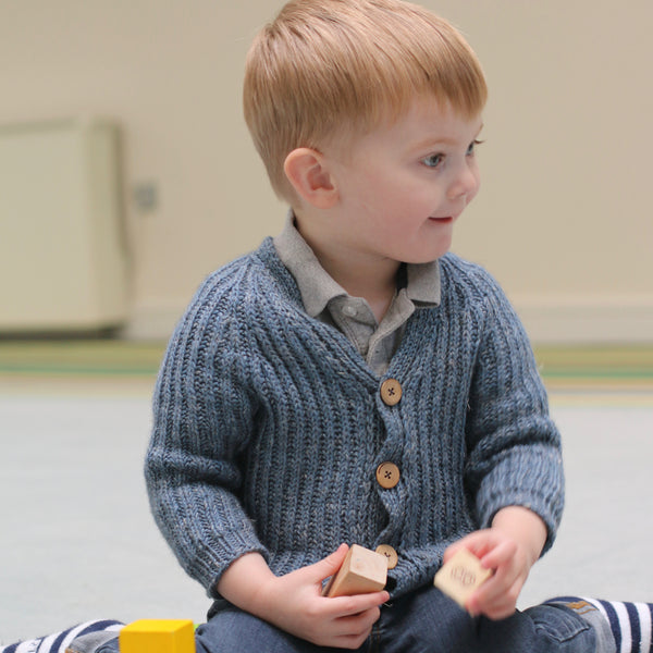 Learn the basics of brioche garments with this simple children's cardigan. It is worked from the top down and the shoulders are shaped using raglan shoulder seams. The front edging is a very tidy knitted on ribbed edging that’s worked all the way around the front edge of the cardigan.