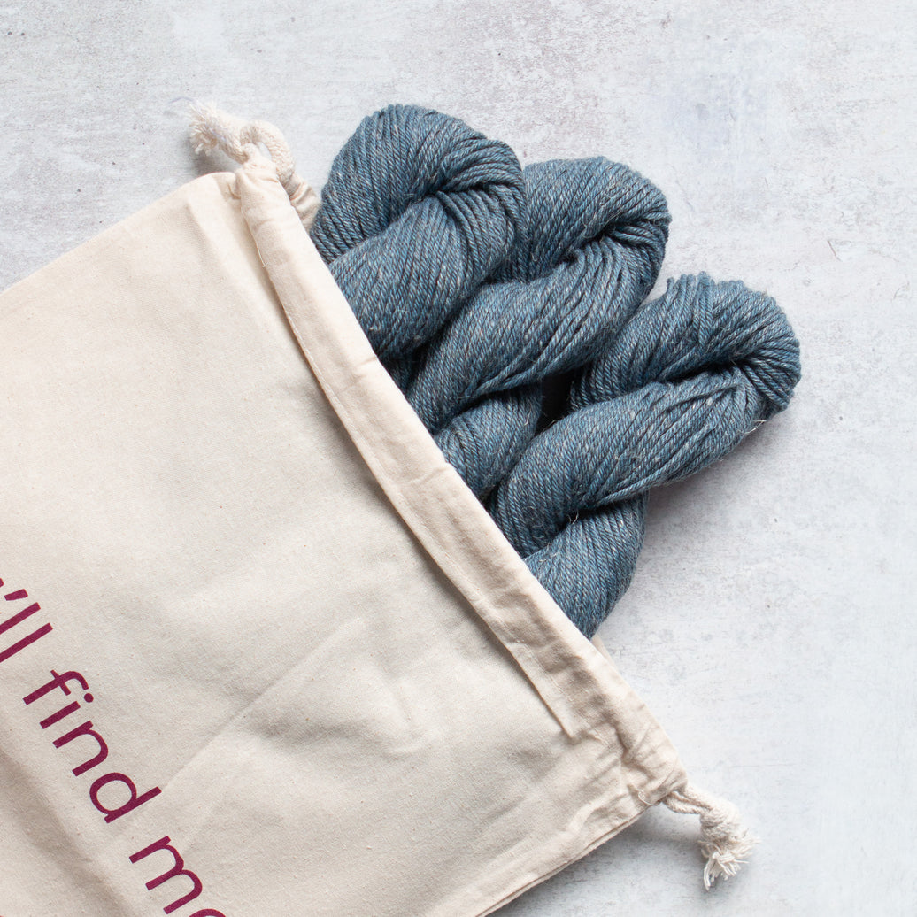 Kit includes two skeins in your choice in Nua Worsted plus a cotton project bag.