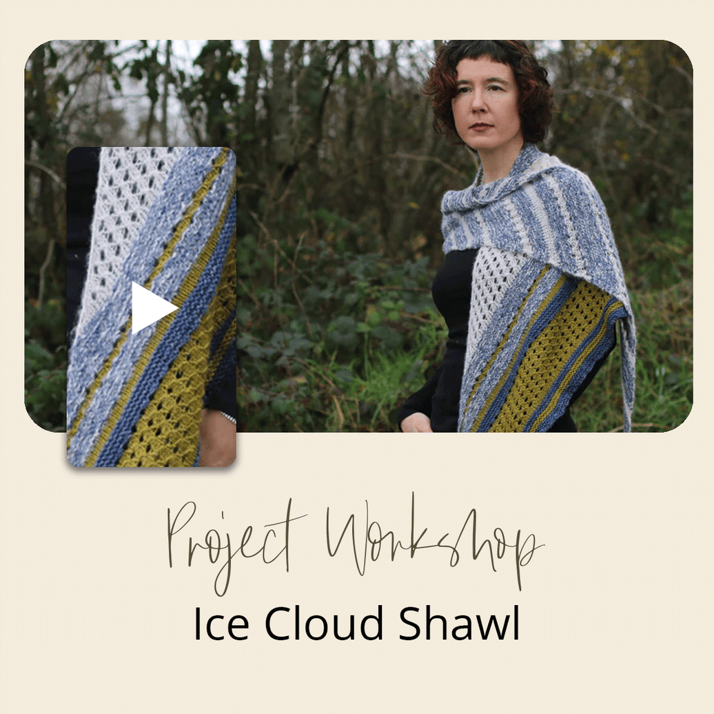 Come join Carol as we take on the Ice Cloud Shawl. This is a sideways knit shawl that uses three different colours. It’s a wide, fairly shallow shawl that’s perfect for wrapping yourself up in on those cold, icy, Winter mornings. The combination of Nua Sport yarn and fluffy Cumulus create a soft, cosy shawl that you’ll never want to take off!
