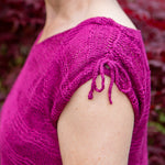 Here you'll knit this top from the bottom up beginning with a garter stitch split hem before using short rows to create a textural garter stitch wave. The shoulders are joined with a shoulder panel worked from the side with a customisable I-cord shoulder detail.