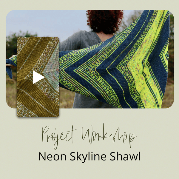 Have you ever wanted to learn how to work slip stitch mosaic colourwork? This is the perfect class to learn with! This shawl begins at the very tip and increases out to the widest point creating a chevron in garter and mosaic pattern stripes. It's fun to knit and watch the stitch pattern emerge!