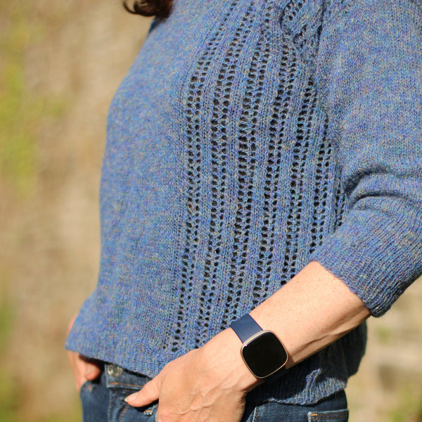 This oversized ladder lace sweater will feel light as a feather to wear. Worked in Blasta Light, a single ply woollen spun yarn, it will float gently across any outfit to keep you warm with none of the weight.